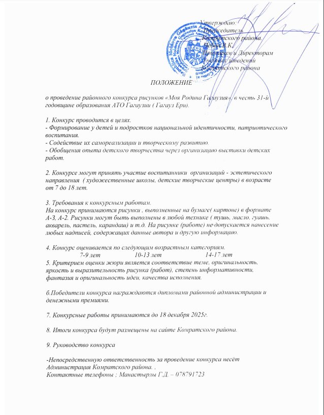 Администрация Комратского района объявляет конкурс рисунков «Моя Родина Гагаузия», в честь 31-й годовщине образования АТО Гагаузии (Гагауз Ери).