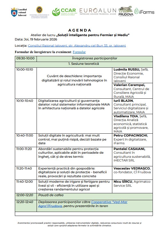 Администрация Комратского района информирует всех руководителей сельскохозяйственных предприятий района и специалистов сельского хозяйства, о том, что Сельскохозяйственный и сельский консультативный центр (CCAR), подведомственный Министерству сельского хозяйства и пищевой промышленности Республики Молдова приглашает принять участие в семинаре.